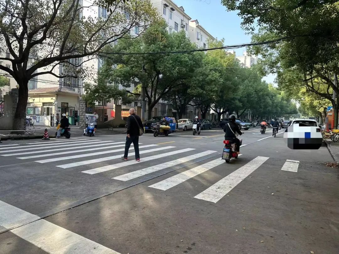 一名老人在新设斑马线上过马路“这条路上本来有两条斑马线,一条靠近路西,位于燎原双语学校门口西侧,是学校放学家长接送孩子的主要区域;另一条稍靠东边,一头正对的是古美十村(平阳路111弄小区)门口,另一头则对着由北向南单行的街坊道路。”家住古美十村小区居民倪老伯向记者反映,两条斑马线消失了,居民们一时无法习惯。