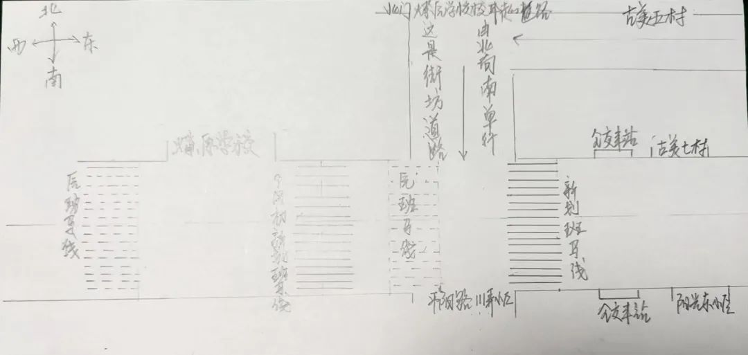 陈炜峰手绘示意图同时,新改的斑马线没有和平阳路两侧路牙做坡道衔接。斑马线正对着的就是人行道上停放的非机动车。有时共享单车、电瓶车停放比较密集,行人想走人行道,还得绕路。