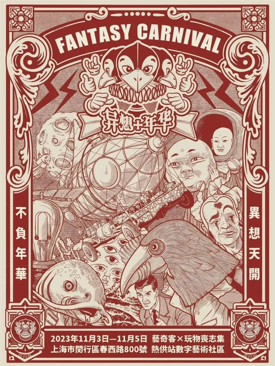 异想嘉年华(Fantasy Carnival)始于2023年,由艺奇客与玩物丧志集联合策划主理,它是展示各种臆想与宏大计划的旷野博物馆,同时也是一场唤醒自我、肆意绽放的另类狂欢。