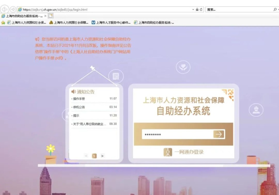 1.通过上海市人力资源和社会保障局自助经办系统进入“改版前门户”(网址:https://zzjb.rsj.sh.gov.cn/zzjbdl/jsp/login.html)