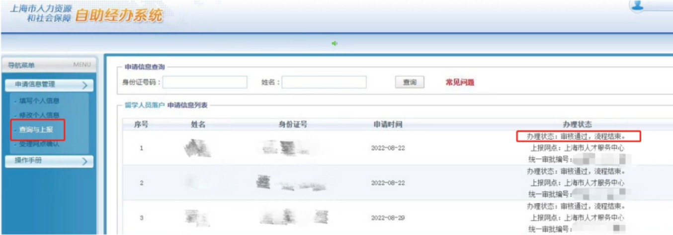 以上两种方式都可以进入“查询与上报”来查询办理状态。