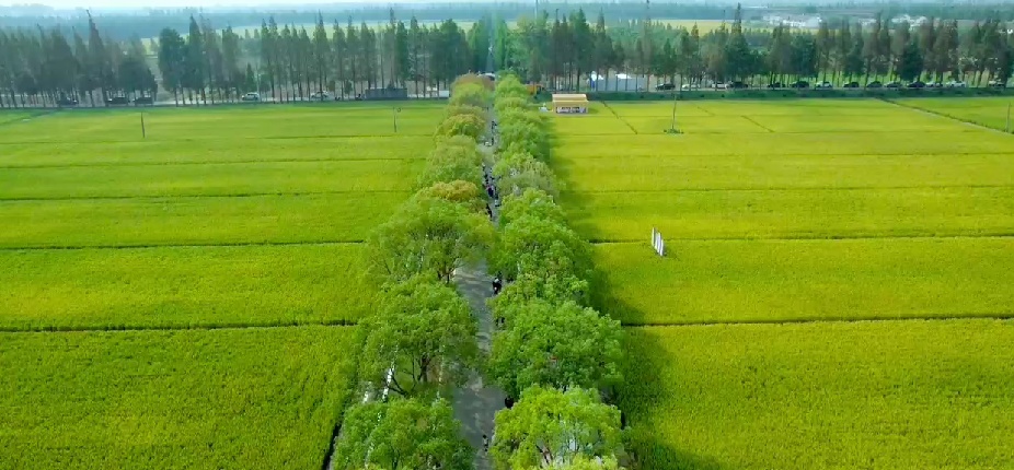 徐徐展开佘山脚下的稻田美景