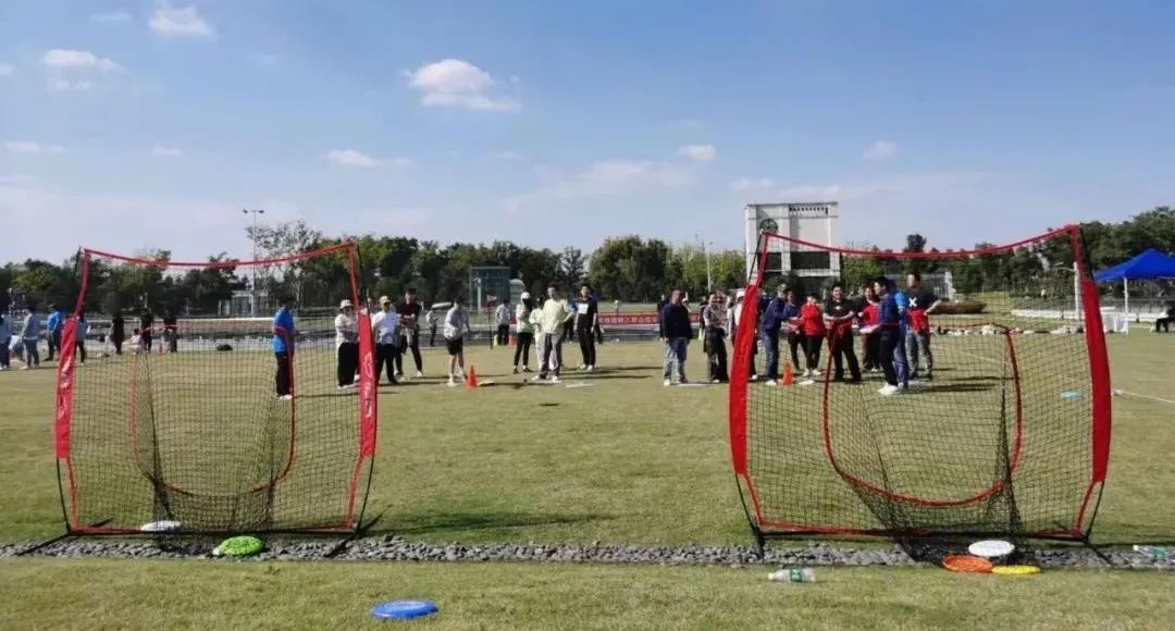 随着裁判员的一声令下,比赛正式开始。参赛选手们紧握飞盘、全神贯注,技术娴熟地对目标精准投掷,彩色的飞盘上下翻飞,在空中划出了一道道优美弧线。比赛精彩激烈,参赛选手们的每一次命中,队友们都会爆发出阵阵掌声,助威声和呐喊声,久久回荡在绿茵场上,大家在飞盘运动中释放出满满的激情与活力。