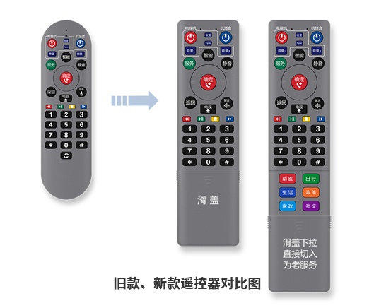 该平台通过“看电视”这一高频动作,把各项养老服务精准送达老人家中。老年人只需拿起重新设计的大字版遥控器,滑动滑盖就能实现看电视与为老服务模式的快速切换。滑盖上方6个为老服务专用按键字体、颜色和电视端6大服务模块完全对应。按一次键,就能在电视屏幕上申请叫车、生活、家政等各类为老服务,使其真正“玩转”数字生活。