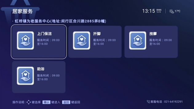 “其实在日常生活中,年轻人都习惯用手机进行就医、打车等服务,这些对我们来说特别简单的事情,对老年人来说其实并不容易。”虹桥镇龙柏六村居委养老顾问王老师表示,“大部分老年人对手机的使用频率、依赖程度相对来说还是比较低的,所以,这个平台,主要就是为了解决老年人的这个痛点问题。借助电视这一老年人生活中的亲密‘伙伴’,呈现给老年人一些相应的数字服务,让老年人也享受到数字化转型的红利。”今年,虹桥镇坚持以人民为中心的理念,挖掘整合各类资源,把有品质、有温度的养老服务送到老人身边。接下来,虹桥镇将通过“数字化”手段持续提升养老服务质量,将养老服务做深做细做实,让养老服务更贴心,打造智慧养老社区,推动虹桥镇养老服务迈上新台阶。供稿:闵虹