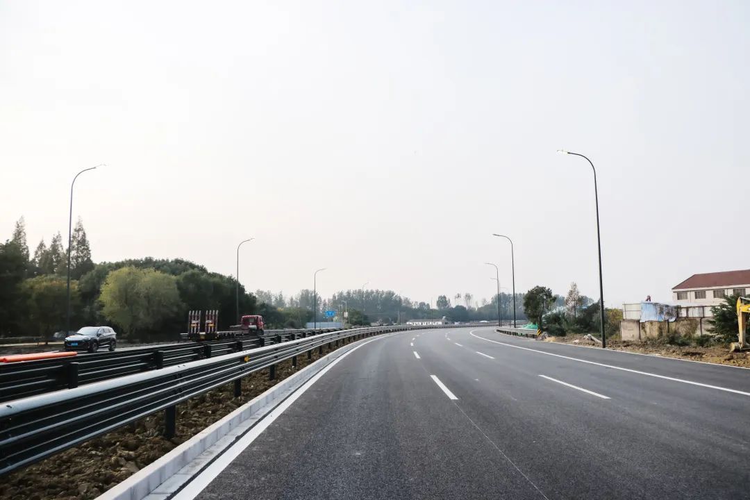 目前,道路沥青上面层已摊铺结束,交通安全设施已初步验收,照明工程已全部完成并具备亮灯条件,道路主线已具备通车条件。