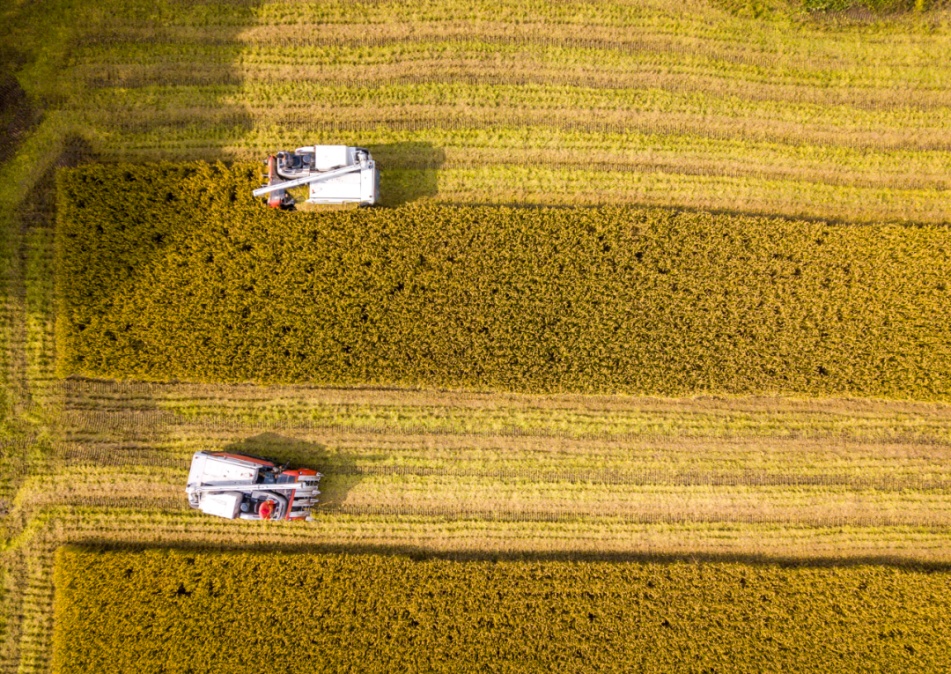 从高空俯瞰,一个个收割机更像是在绘画勾勒出一幅幅充满时尚感的几何画作。