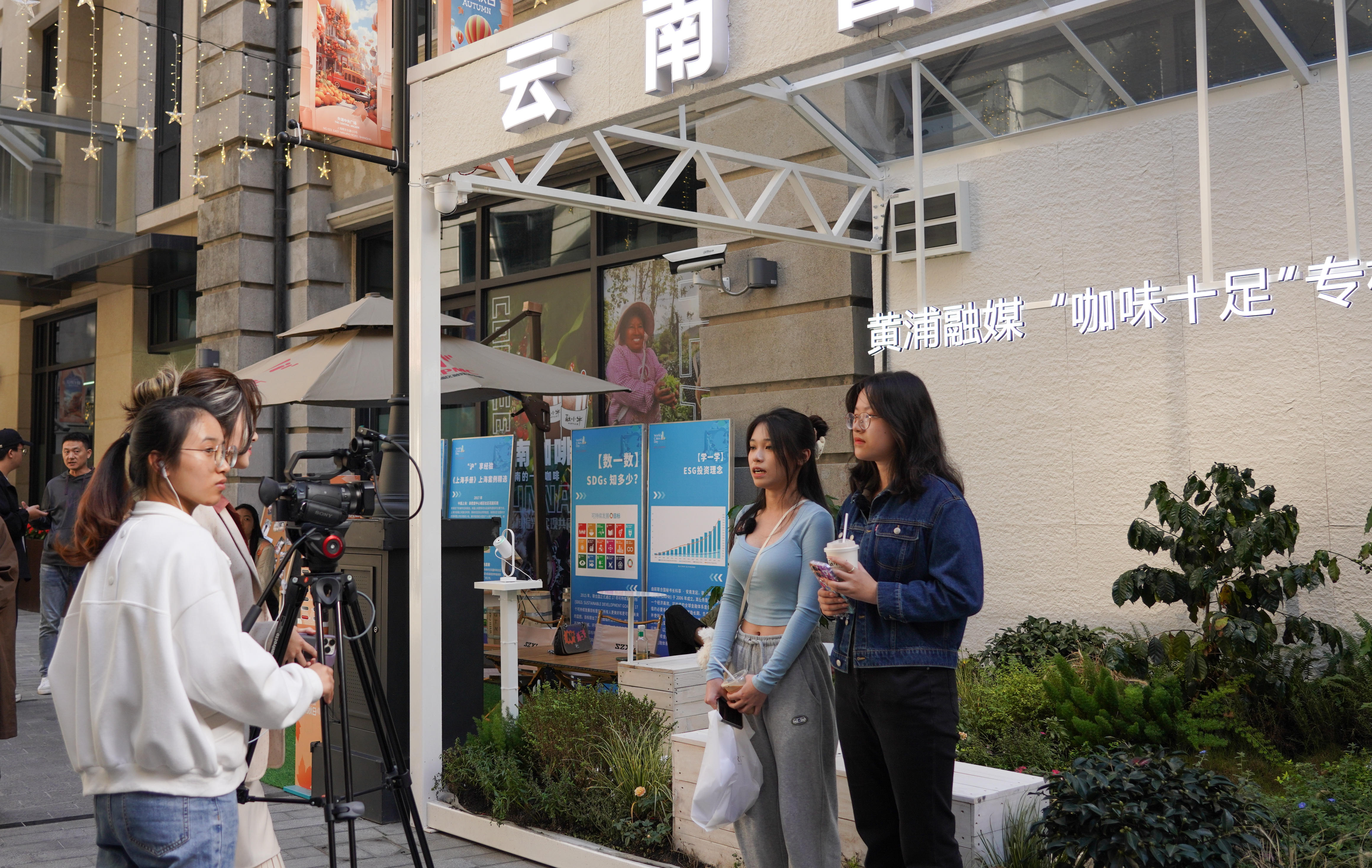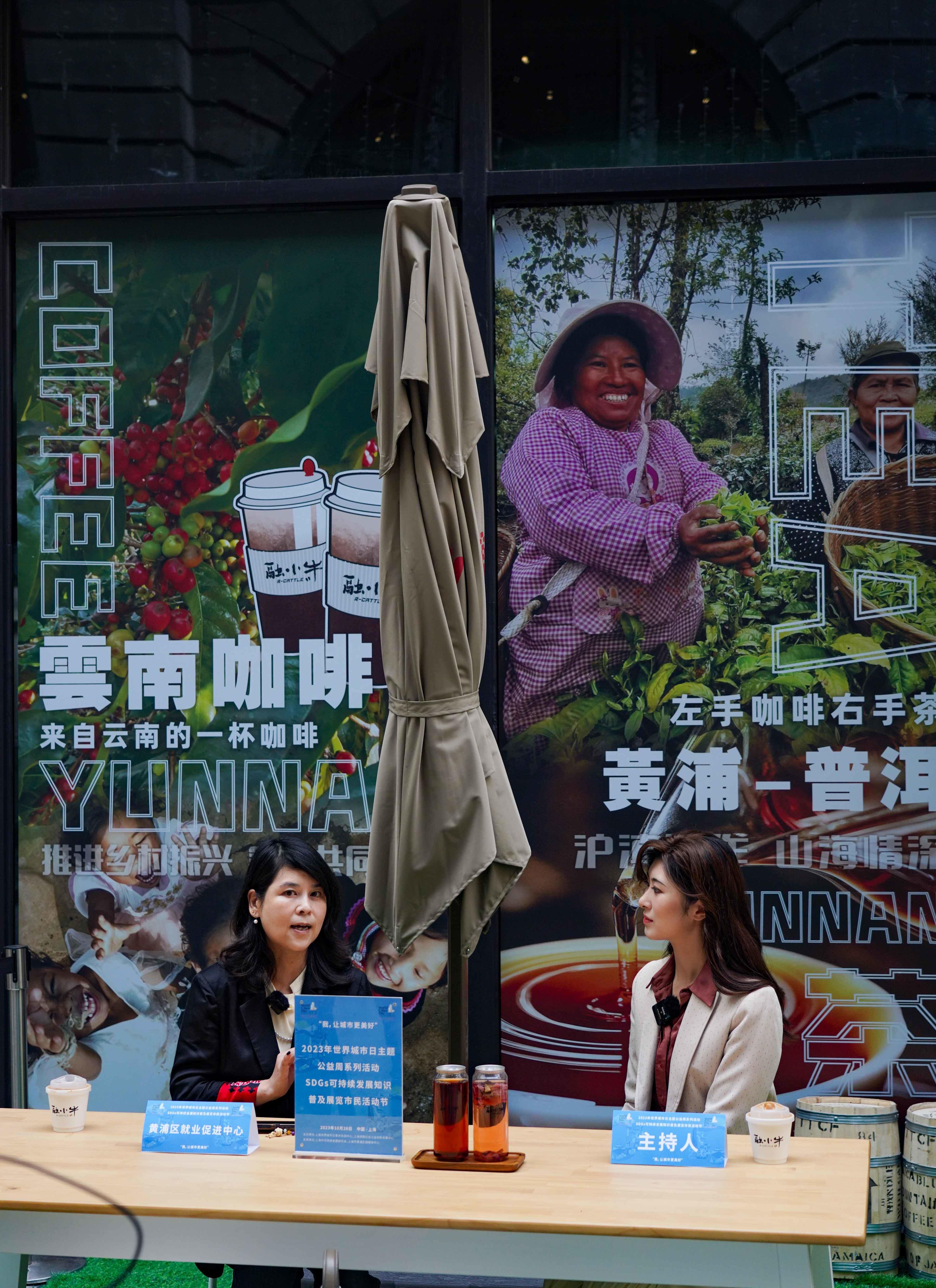 10月28日,作为2023年世界城市日主题公益周系列活动之一,“关注融资和SDGs可持续发展知识普及展览市民活动”线下展示互动环节,在位于外滩中央广场的黄浦融媒“咖味十足”线下互动点举行。