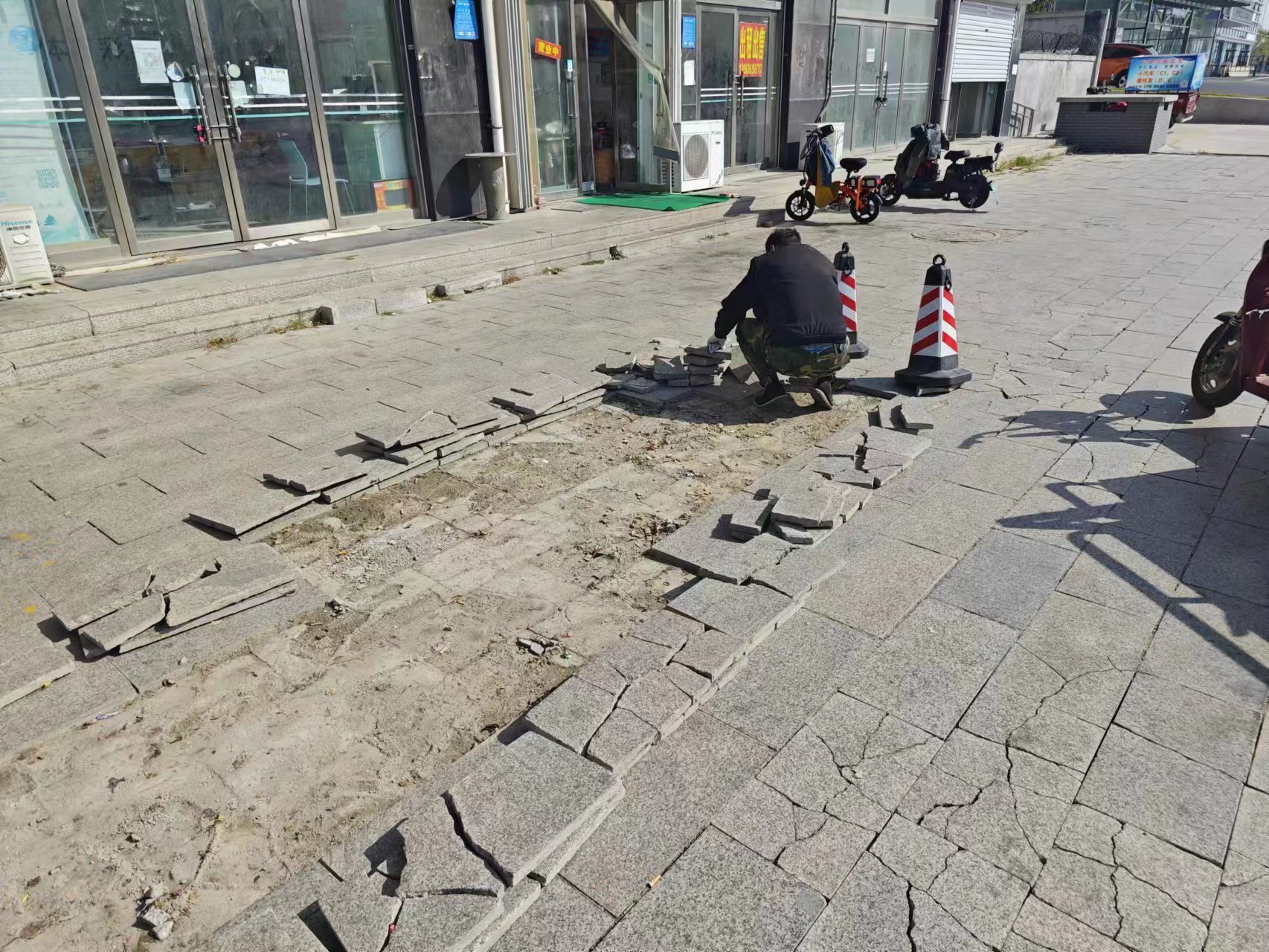 网格员立即联系施工人员到现场实地勘察,研究路面修补方案,将破损砖块启出,对破损路面重新进行填补修复,设置警示标志,提醒过往居民注意绕行。路过的居民王阿姨高兴地说:“之前路面坑洼不平,老人孩子晚上走路不注意的话容易扭到脚,路过的汽车也会颠簸一下,现在把路面修补好了,我们出行也更放心了。”