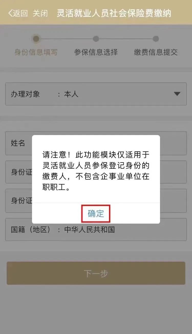灵活就业登记参保手续办理成功后,次月起个人应向社会保险费征收机构(税务部门)按月足额缴纳社会保险费。