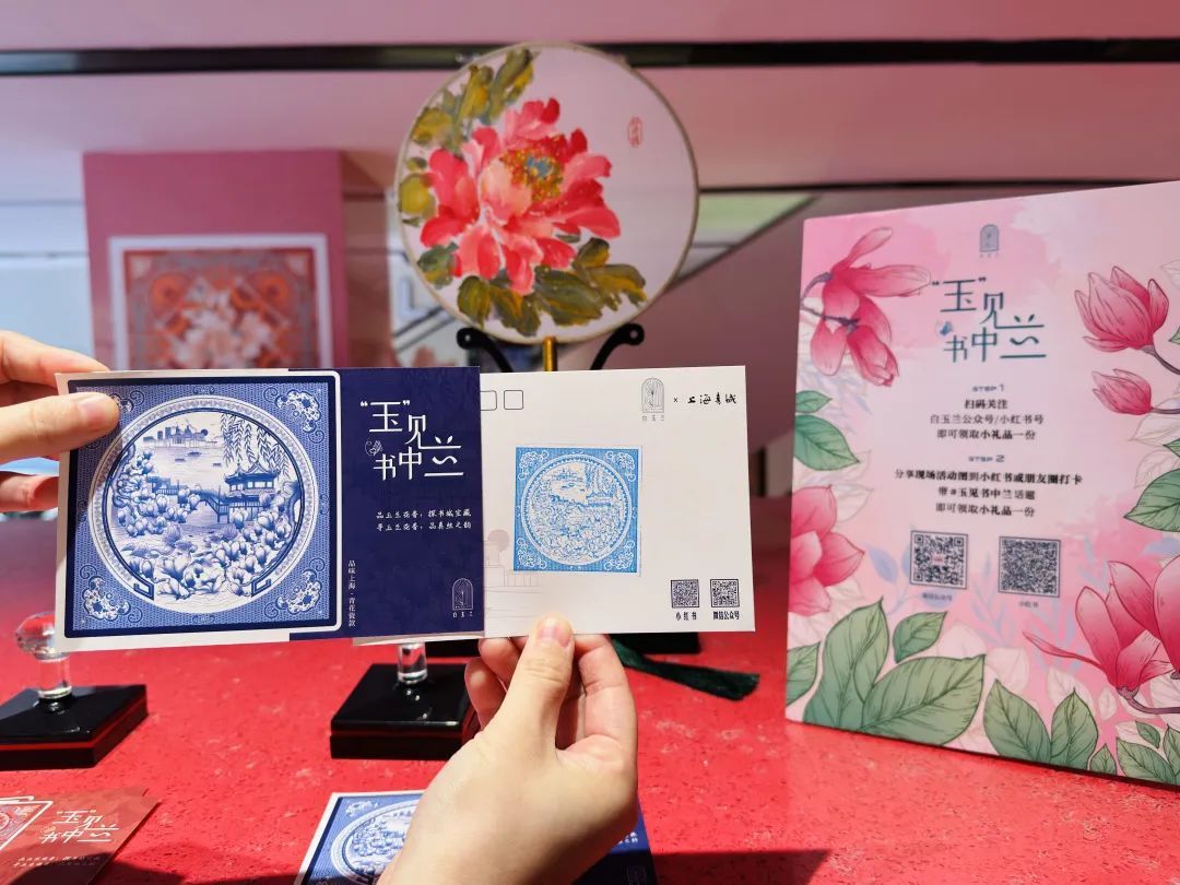 为契合书城主题,白玉兰真丝快闪店特地为读者准备了三套主题明信片,读者可以免费领取并盖章。