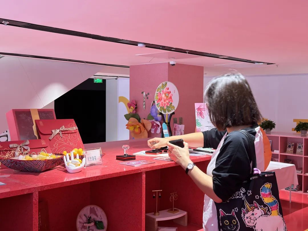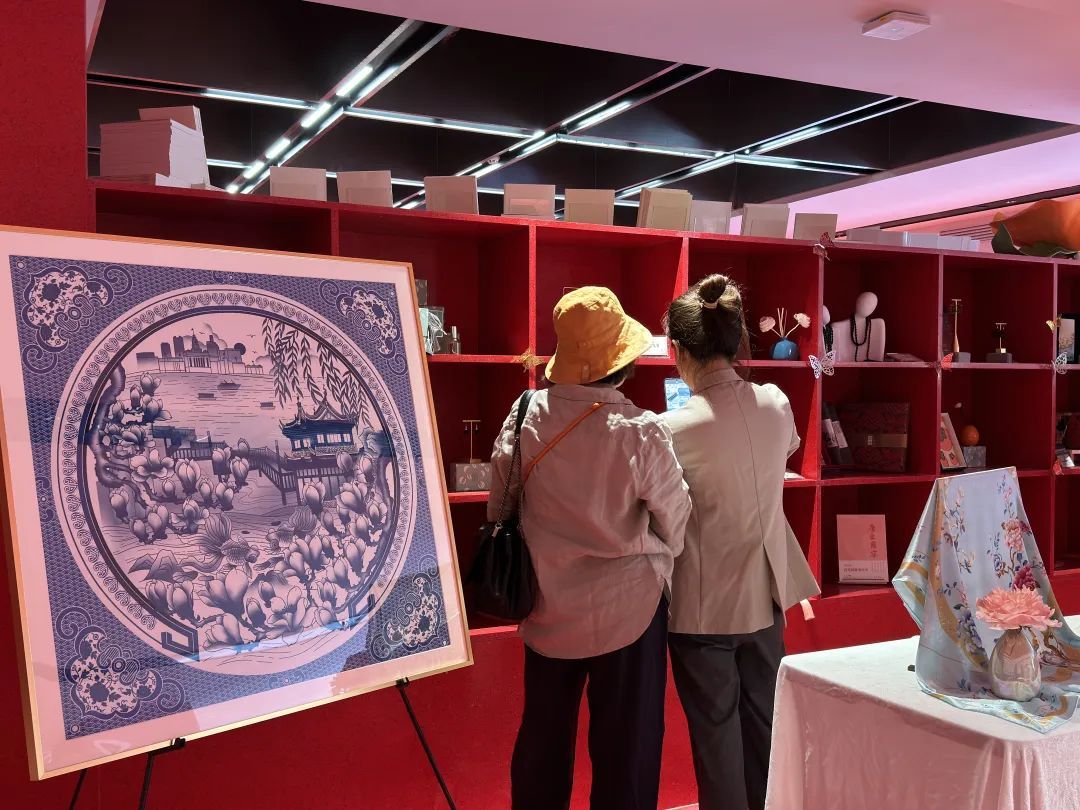 原来,上海老字号品牌白玉兰真丝在此开启了为期两个月的限时快闪店——“玉”见书中兰,带来多款颇具上海特色的伴手礼丝巾“初心之地”“品味上海(青花瓷)”和最新文创产品,展现中国丝绸文化的独特魅力。