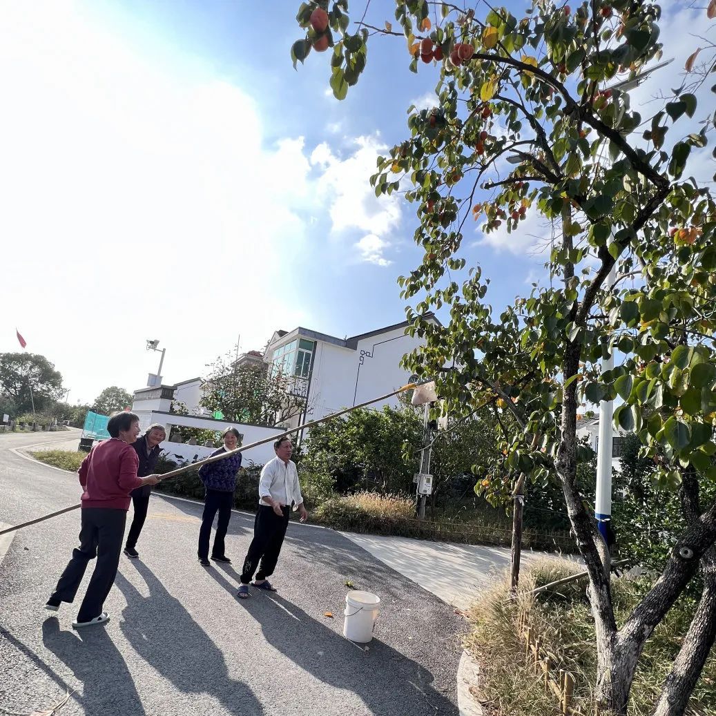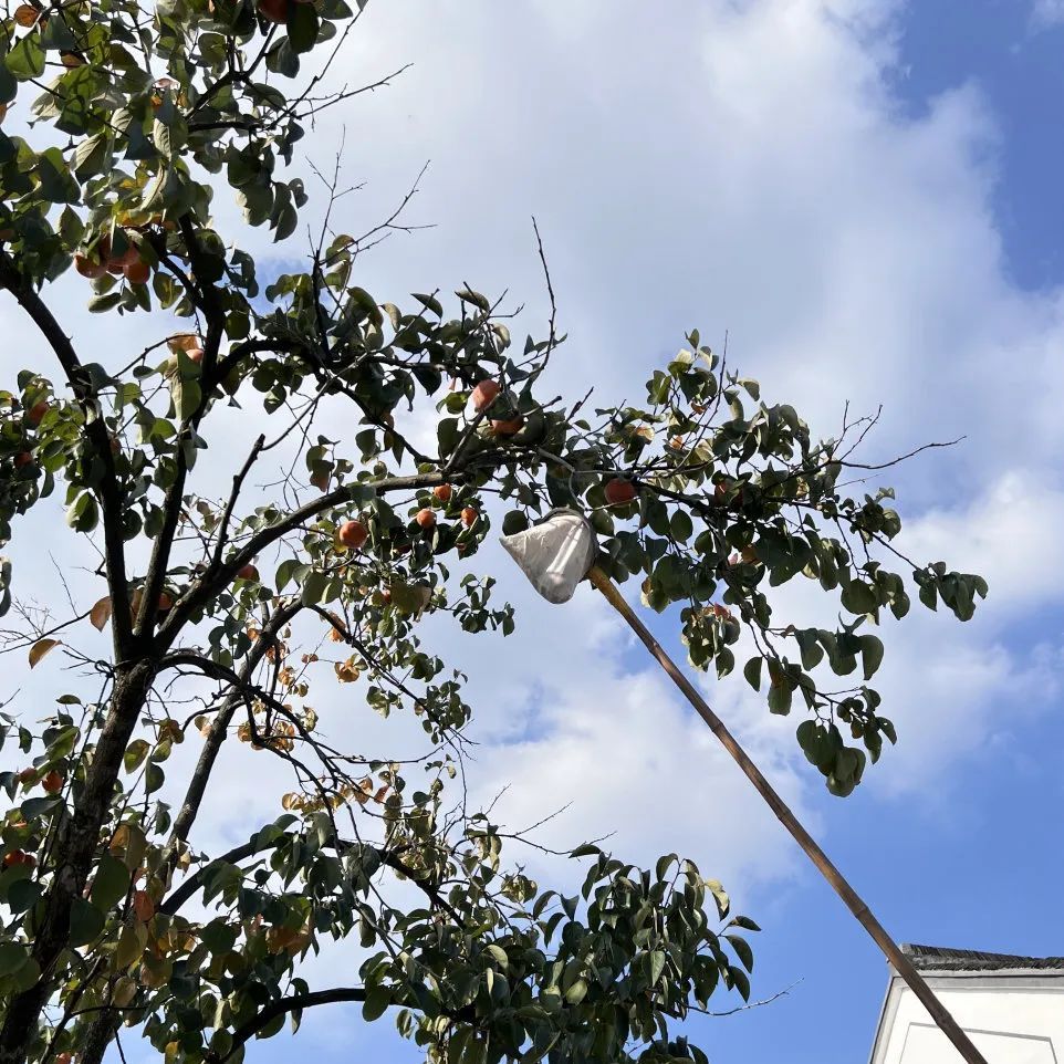 在徐练村,村民自制的摘柿小工具,让收获柿子变成一桩趣事。只见村民手拿小工具摘下一颗颗饱满且色泽鲜艳的柿子,看着收获满满的场景,村民脸上洋溢着丰收的喜悦。平时还能约上三五好友,一起坐在农家大院吹着秋风,品尝着甜甜软软的柿肉。