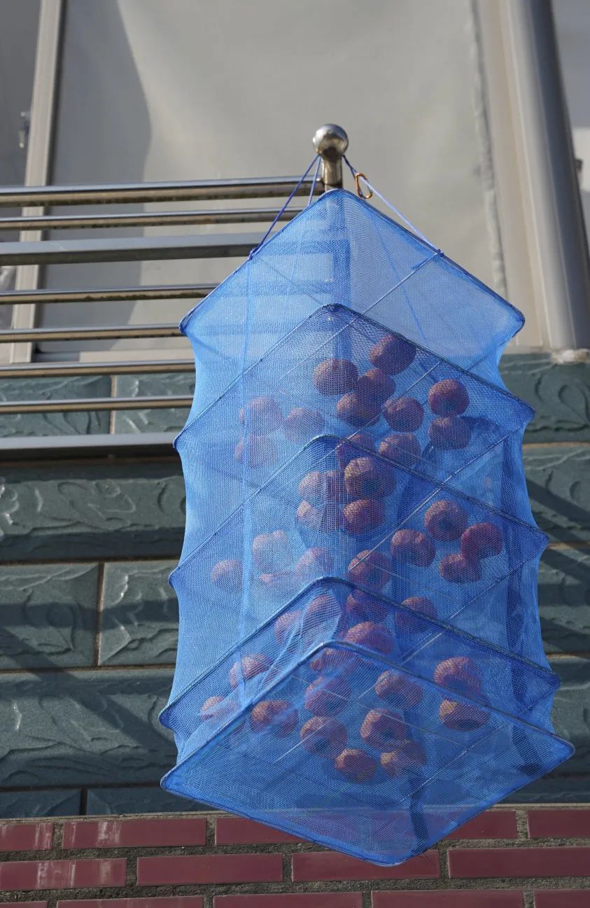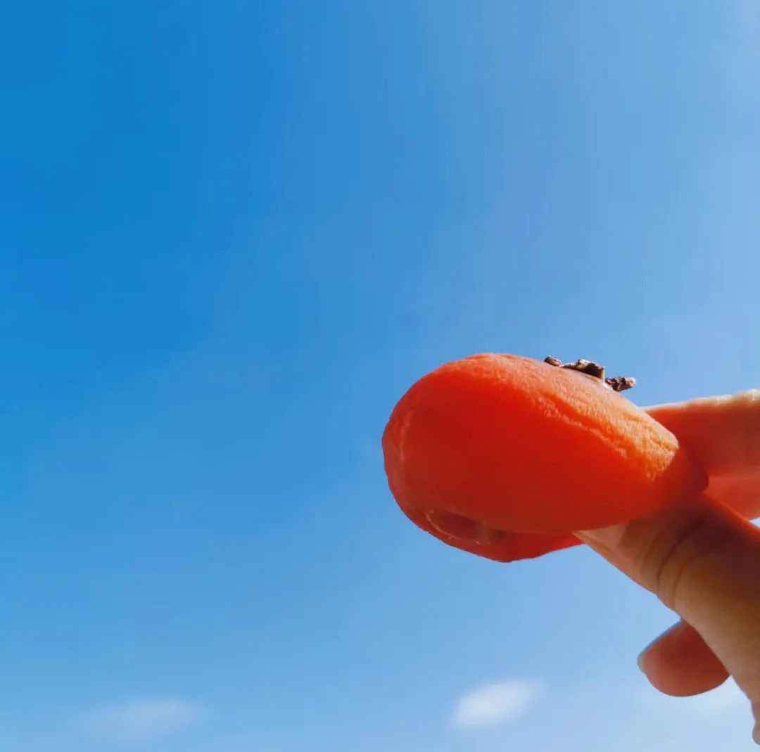 有的农户把成熟的柿子削皮后在家门口晾晒,制成的柿饼咬上一口,外皮Q弹有韧劲儿,里面却柔滑似蜜,就像在吃流心软糖一样。