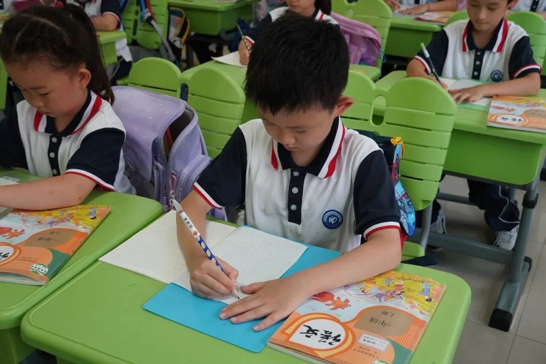 “叮铃铃……”上课铃响,庙行实验学校的萌娃们迅速整理好课本和学习用品。他们坐姿端正,专心听讲,积极开动小脑筋,“一拳一尺一寸记在心”,一撇一捺认真书写!