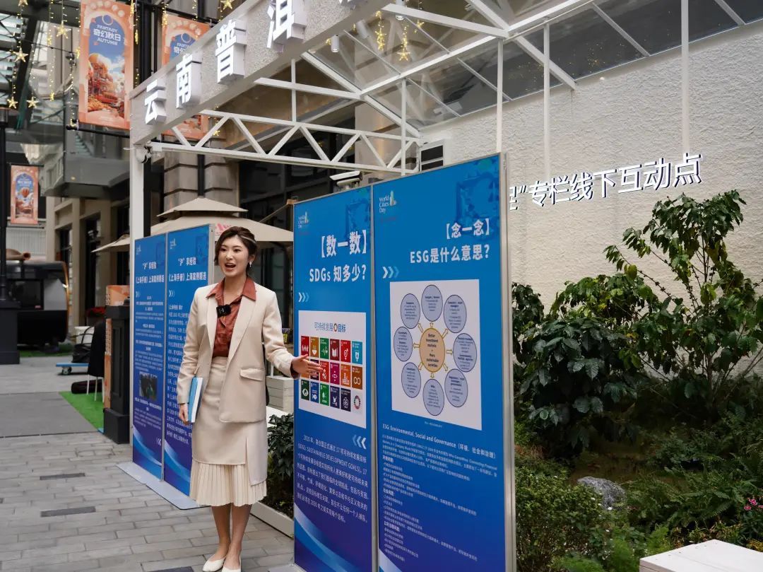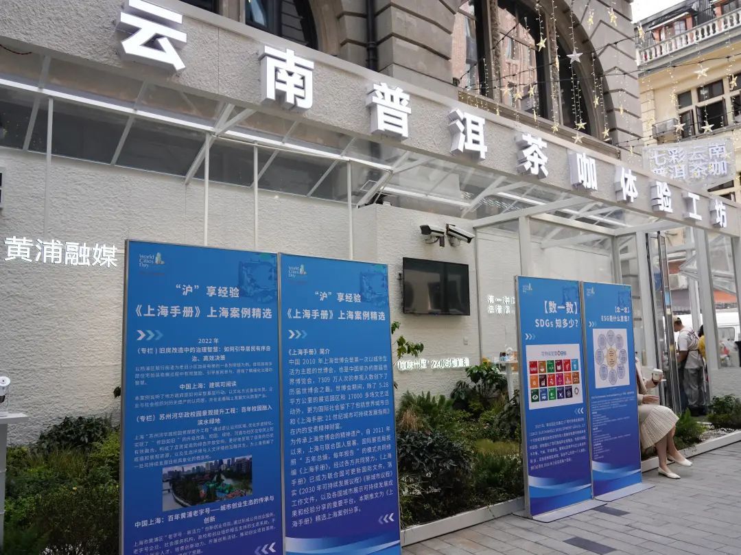 10月28日,作为2023年世界城市日主题公益周系列活动之一,“关注融资和SDGs可持续发展知识普及展览市民活动”线下展示互动环节,在位于外滩中央广场的黄浦融媒“咖味十足”线下互动点举行。