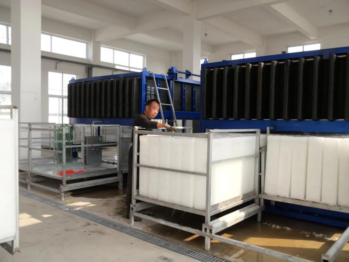 走进肥城市汶阳镇砖舍村有机蔬菜加工配套制冰项目现场,一块块刚制好的冰块从模具里倒出,工人们快速装车,运往当地的预制菜生产企业。