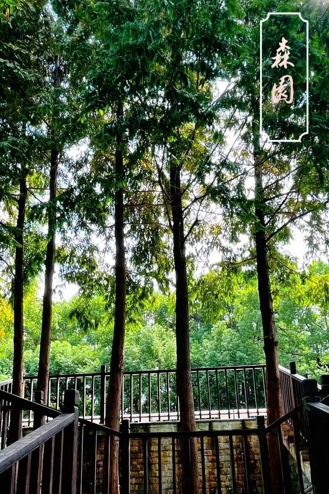 原为清光绪年间宝山县城护城河, 后因其功能调整填河造林形成城市低洼林带,取名“森园”。由石栈道串联各个景点,园内主要景点有水杉林、观赏草花境、景亭等。