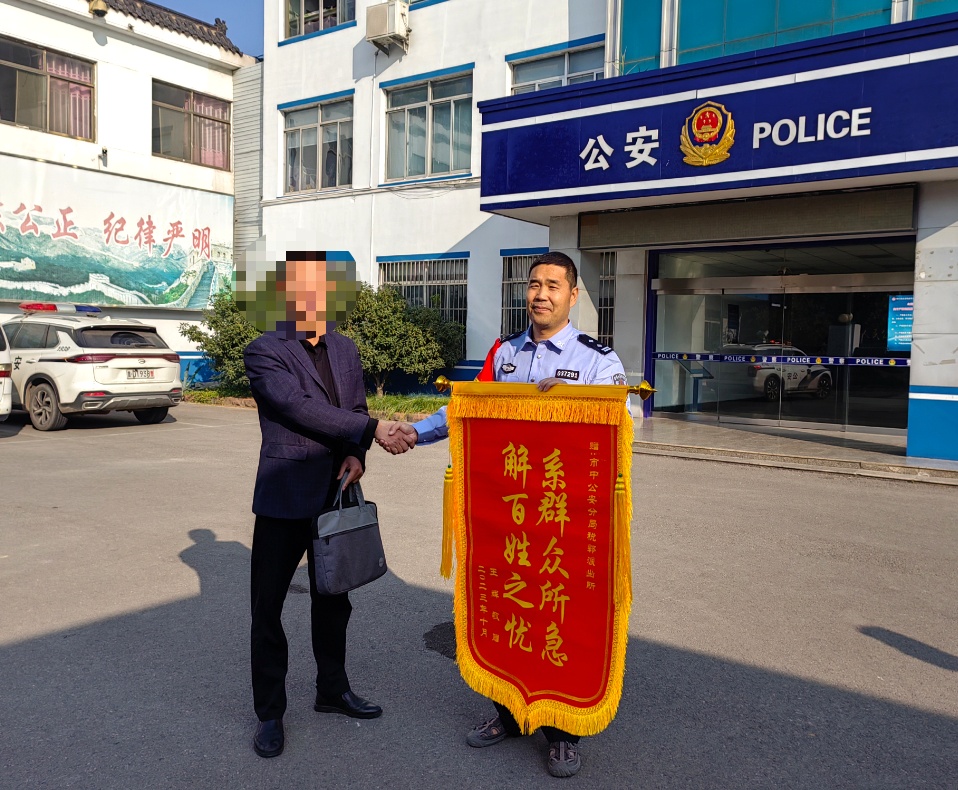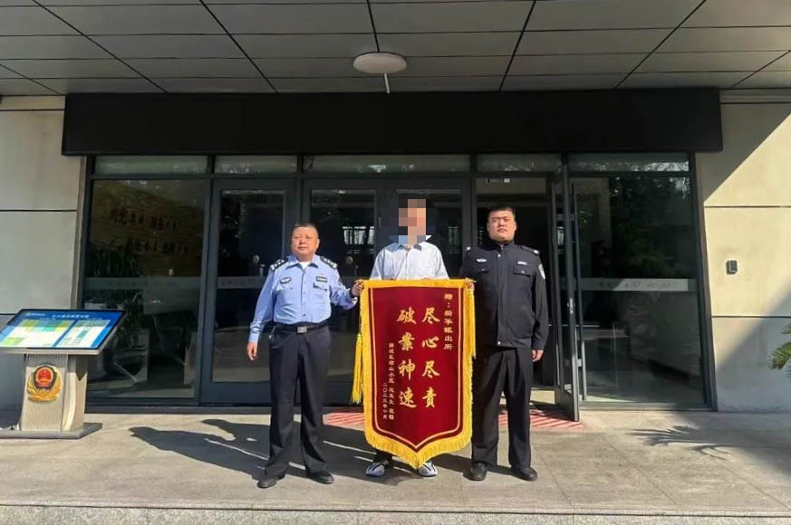 10月24日,赵先生将一面写有“尽心尽责 破案神速”的锦旗送到了薛城分局新华派出所民警手中,对民警全力侦破案件,帮助找回其被盗的电动车表示感谢。