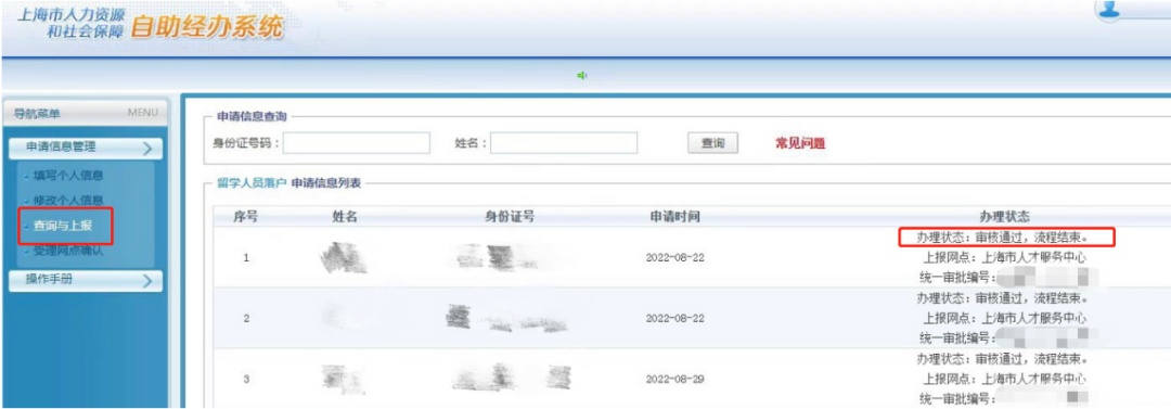 随申办查询,能显示完整的审批流程和当前节点状态(通过/退回),但是如果材料被退回的话,是无法看到退回原因和需要补充的相关材料的。