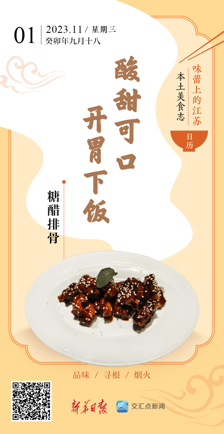 糖醋排骨是一道经典的江苏家常菜。糖醋是中餐传统调料之一,在粤菜、鲁菜、川菜、浙菜、苏菜、豫菜中广为流传。江浙一带的人们,尤其青睐糖醋口味的菜肴。