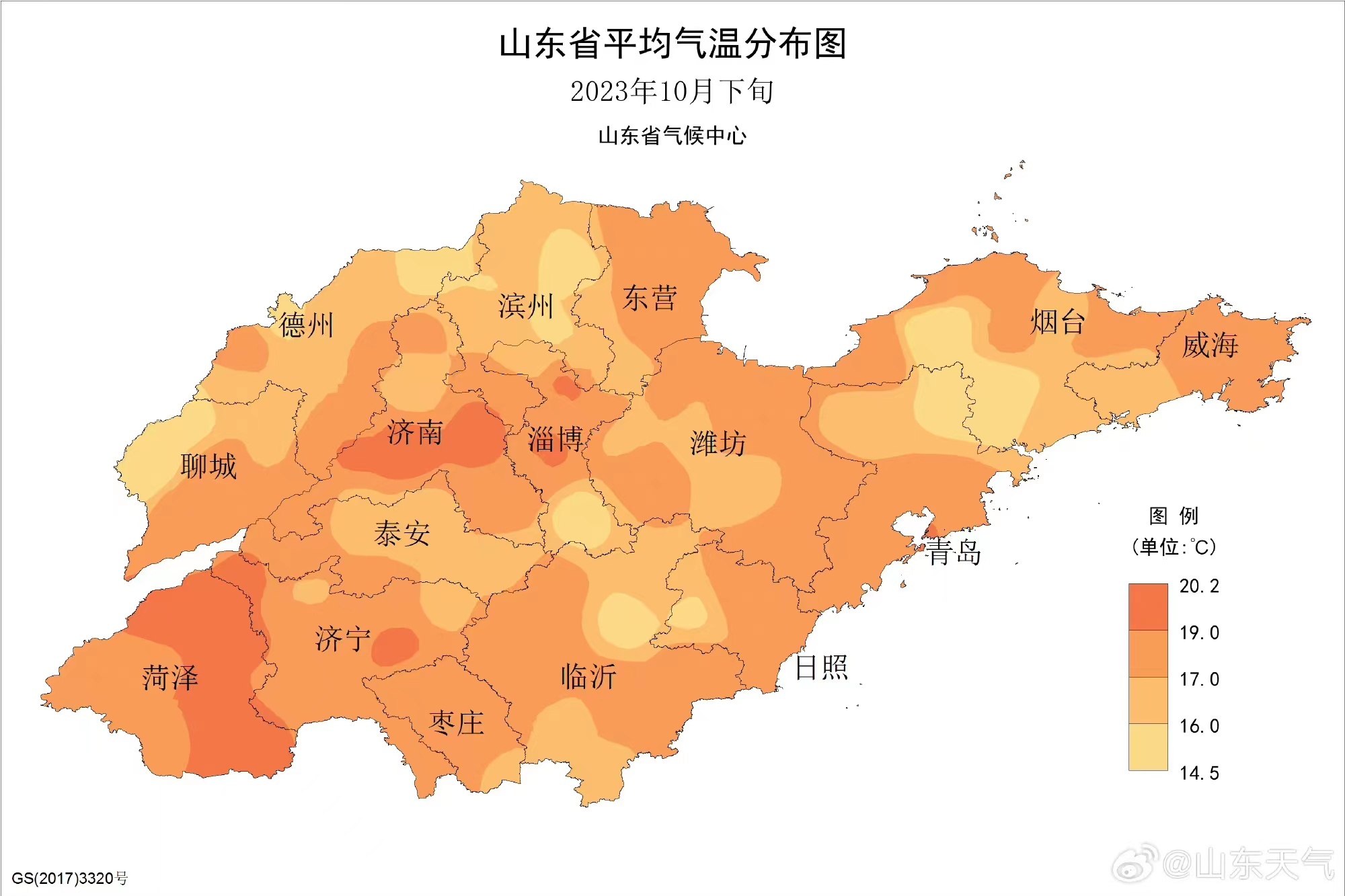 10月山东平均气温较常年偏高2.4℃,菏泽市偏高3.0℃以上