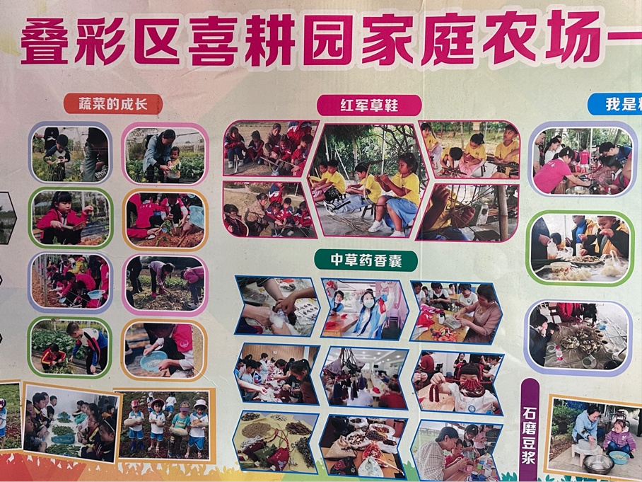 据了解,基地开辟了“农、学、游、乐”四大板块,设有丰富的研学课程,包含种植、木工、园艺、农产品加工等工艺体验,集研学旅行、学生军训、综合训练和亲子活动于一体的多功能生态研学基地,并成为多所学校校外研学实践教育基地。“我们还开展了‘收获甘蔗’‘红军草鞋’‘中草药香囊’‘甜酒制作’‘体验豆文化’等独具特色的课程,‘红领巾’们带着浓厚的兴趣来学习,结果多半是事半功倍。”潘茜茜指着一块活动照片墙展板向记者介绍。