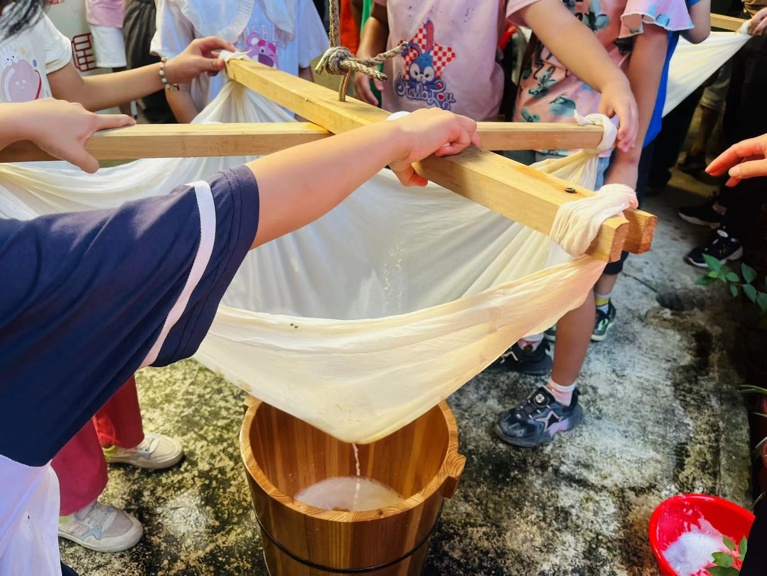 潘茜茜向记者介绍,课程设计“有头有尾”很关键,理论知识必须和实践相结合,让孩子们能完整地学习体验。例如想要体验“舂”的过程,“红领巾”们必须先生火蒸糯米,蒸熟后还需将糯米饭放进碓里。