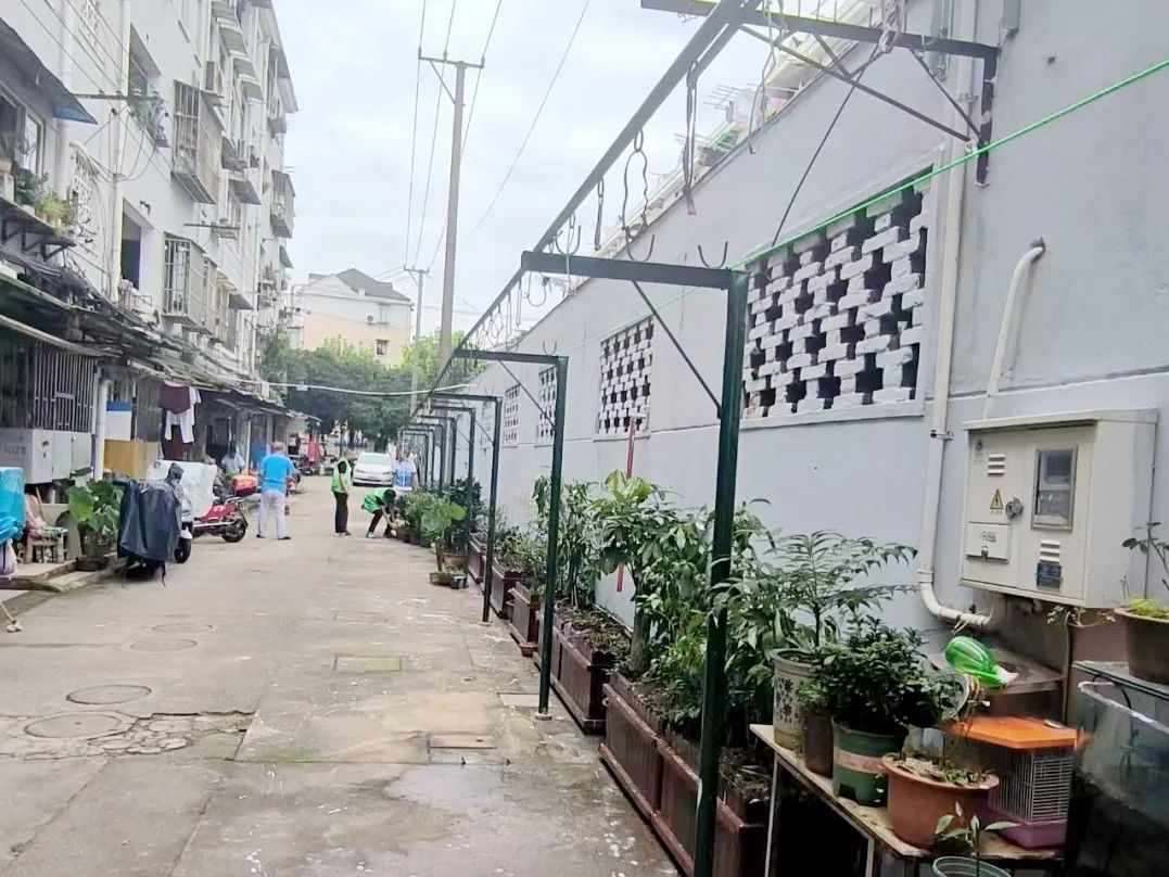 然而,几个月前的这里,并没有这道规划有序的亮丽风景线。它所在的凤城三村东小区是一个典型的老旧小区,公共空间资源有限。据周边居民反映,延吉西路80弄35号-37号楼房的非机动车车棚附近,有不少居民将绿植紧贴车棚外墙随意摆放。“不止是摆放得无序啊,日子久了,不少花盆底部都开裂破损了,特别影响美观。”现场居民谈到。“加上车棚外还存在着一些随意停放的非机动车和乱堆物现象,整条道路既不美观,也存在安全隐患。”