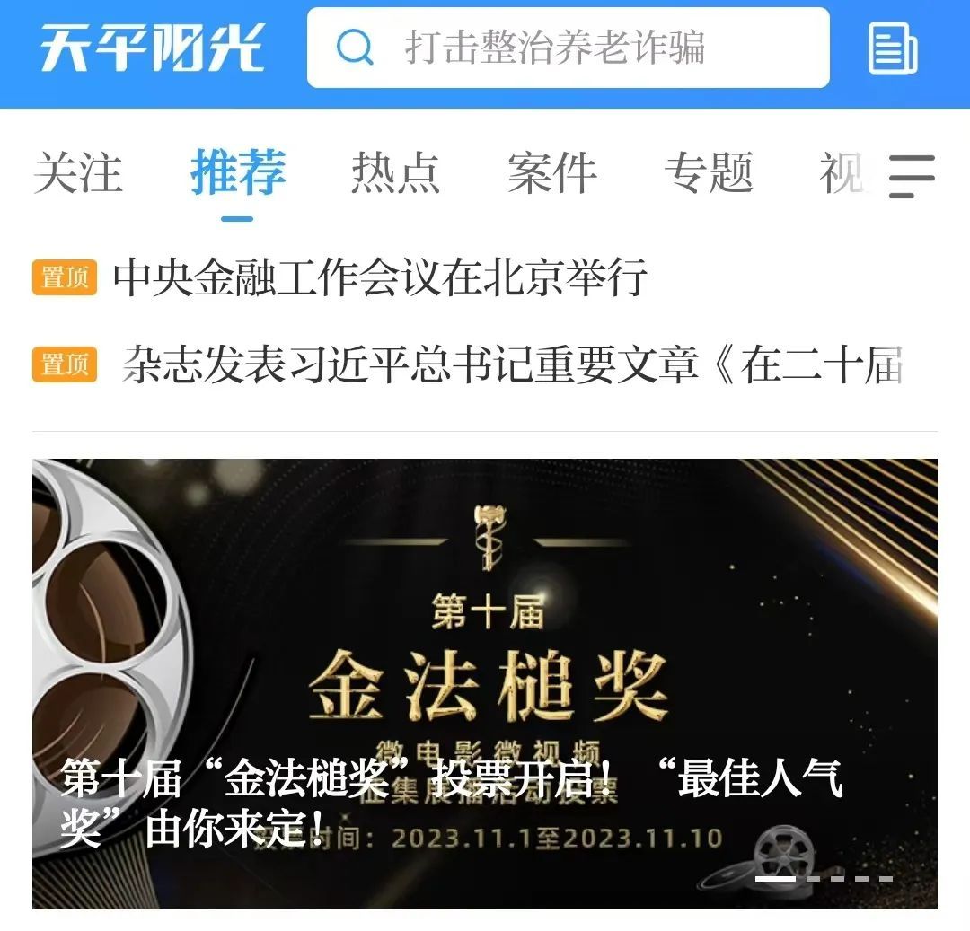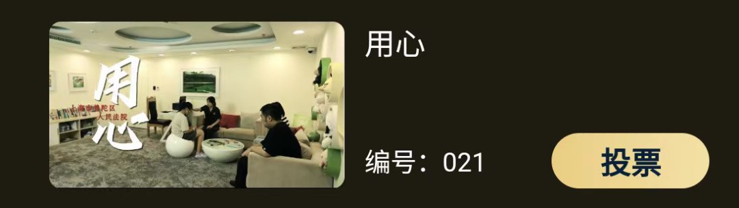 在首页点击进入第十届“金法槌奖”微电影微视频征集展播活动投票页面。