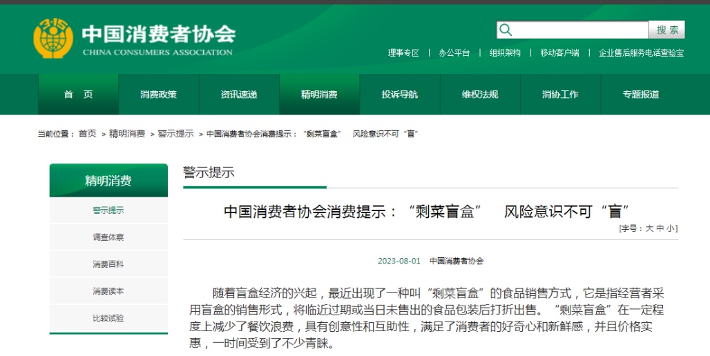 但与此同时,“舌尖上的风险”也不容忽视。今年中国消费者协会发布“剩菜盲盒”消费提示称,“盲盒”自带的不确定性和“剩菜”本身的安全问题,可能使“剩菜盲盒”背后存在隐患。