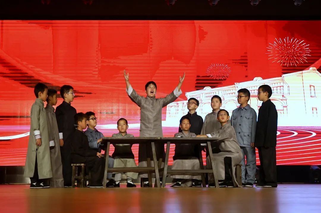“怒发冲冠,凭阑处、潇潇雨歇。抬望眼、仰天长啸,壮怀激烈。”一群小学生以情景剧+朗诵的形式演绎《满江红》……