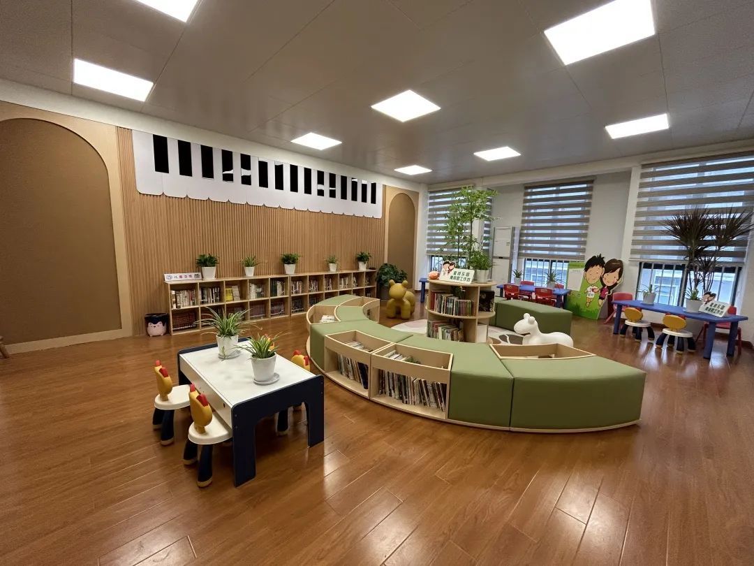 在近600平方米的空间里,升级后的党群服务站设置了多功能活动大厅(爵士音乐排练厅)、康乐天地(乒乓房)、社区书房、幼儿绘本馆、心灵坊、书香咖吧、老友记花园等近十个多功能融合空间。
