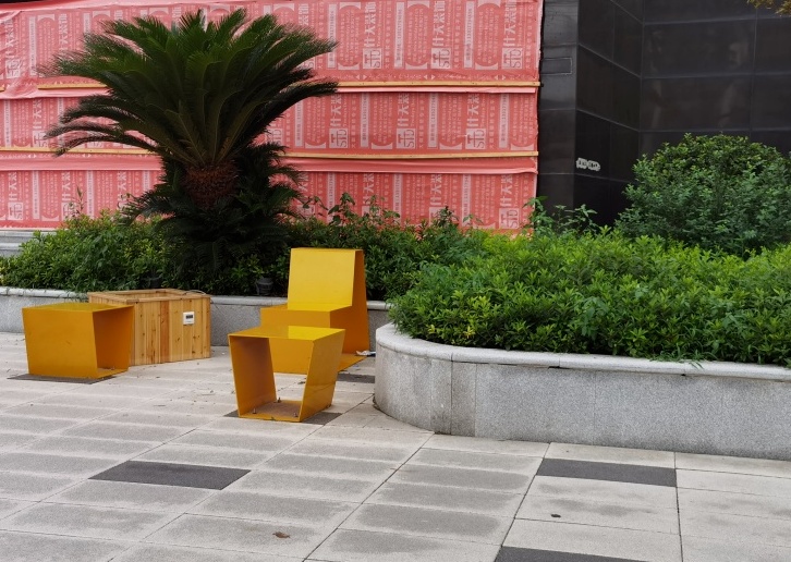 在抚顺路西北角,恒联新天地小区的花坛与人行道之间有一块内凹的空间,此前常被放置杂物,现利用现有环境,巧妙增设公共座椅。