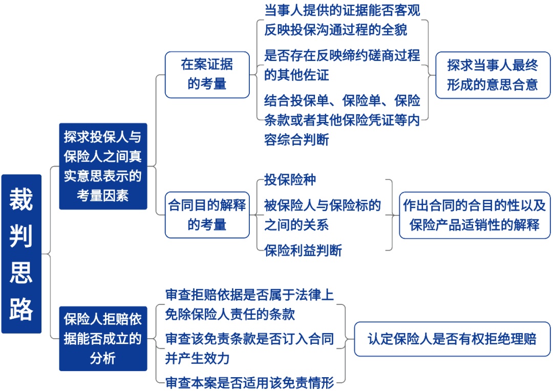 一是判断投保人与保险人之间就案涉投保事宜所形成的真实意思合意为何,即投保人究竟欲购买一份怎样的保险产品,保险人有无据此销售匹配的保险产品,抑或存在误导销售;