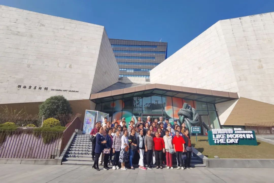 随后,大家乘坐巴士来到刘海粟美术馆,参观了正在举办的“譬如青春——第十七届上海青年美术大展”,欣赏青年艺术家创作的具有时代特点的艺术作品,同时跟随讲解员的讲解,了解了刘海粟先生的生平和创作的艺术作品。“刚开馆的时候我来过,这次再来发现又多了不少艺术品。”居民茅老伯告诉记者。