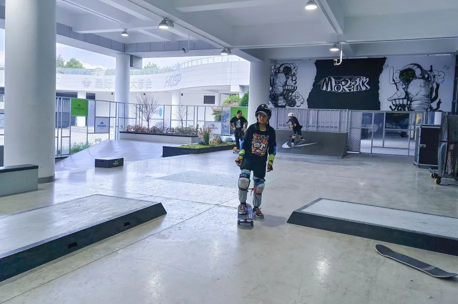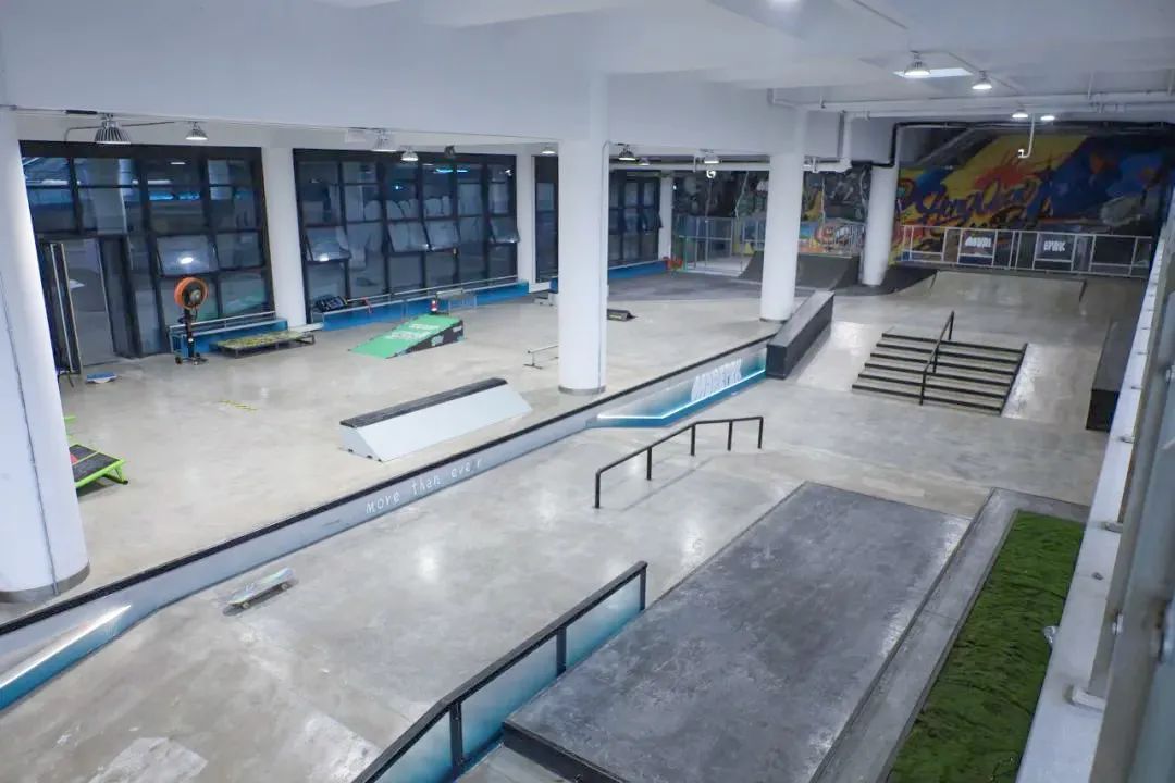 场馆分为室内和室外两个部分,室内设有波浪道、U池、碗池、金字塔、mini ramp等设施,室外打造了赛级的街式场地。这里拥有从赛级街式到碗池区域的全地形涵盖,以及从入门到职业化选手的全阶段教培体系,无论是新手还是大神,烈日还是下雨,都可以享受滑板的乐趣。
