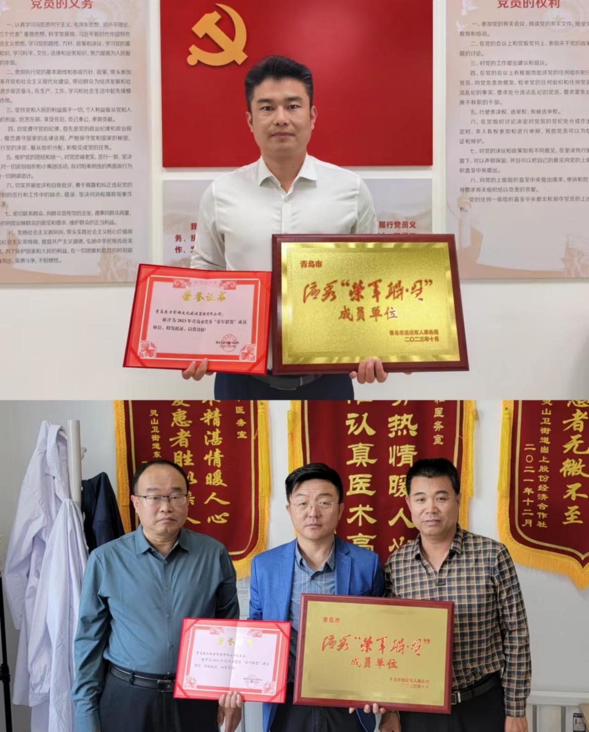 近日,在青岛市退役军人事务局组织的优秀“荣军联盟”评选中,经过逐级推荐、市级审核、全面复核、集中评比、社会公示等,灵山卫街道青岛东方影都文化旅游管理有限公司、青岛家和健康管理有限公司脱颖而出,荣获青岛市2023年优秀“荣军联盟”成员单位称号。