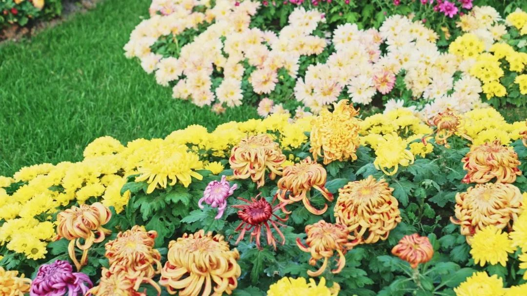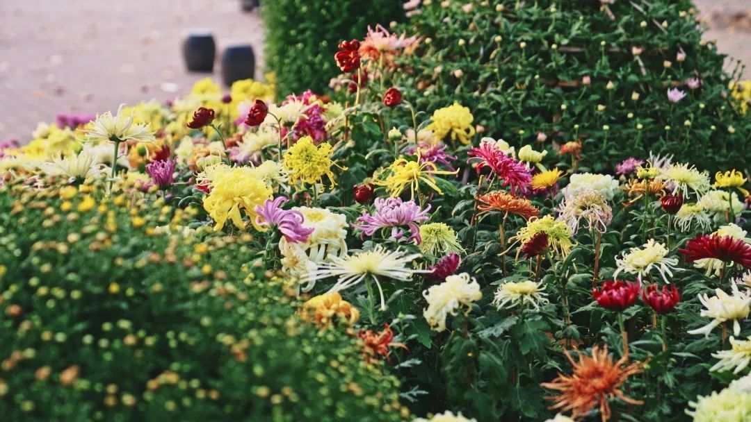 金秋时节,公园里的菊花大放异彩