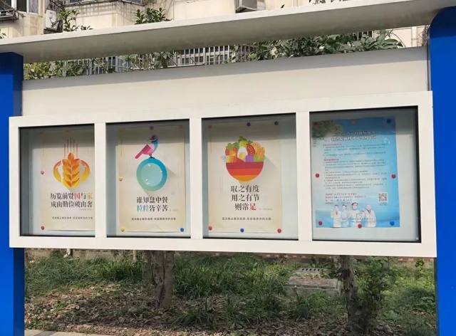 各居民区小区通过“社区通”平台、电子屏、张贴宣传栏海报、公益广告等多种宣传方式,开展“光盘行动我倡导”公益传播活动,让“厉行节约、反对浪费”的理念在全社会蔚然成风。