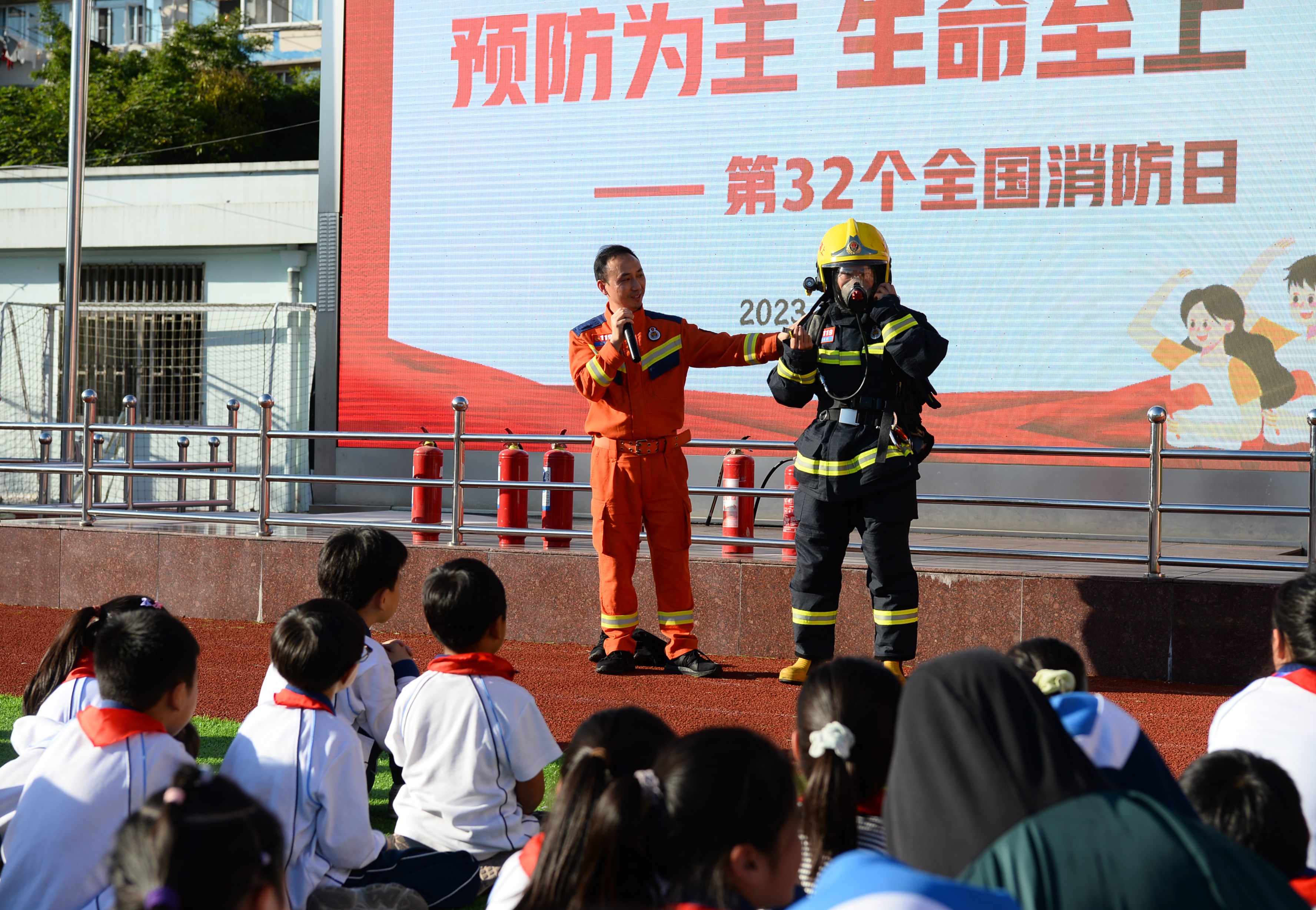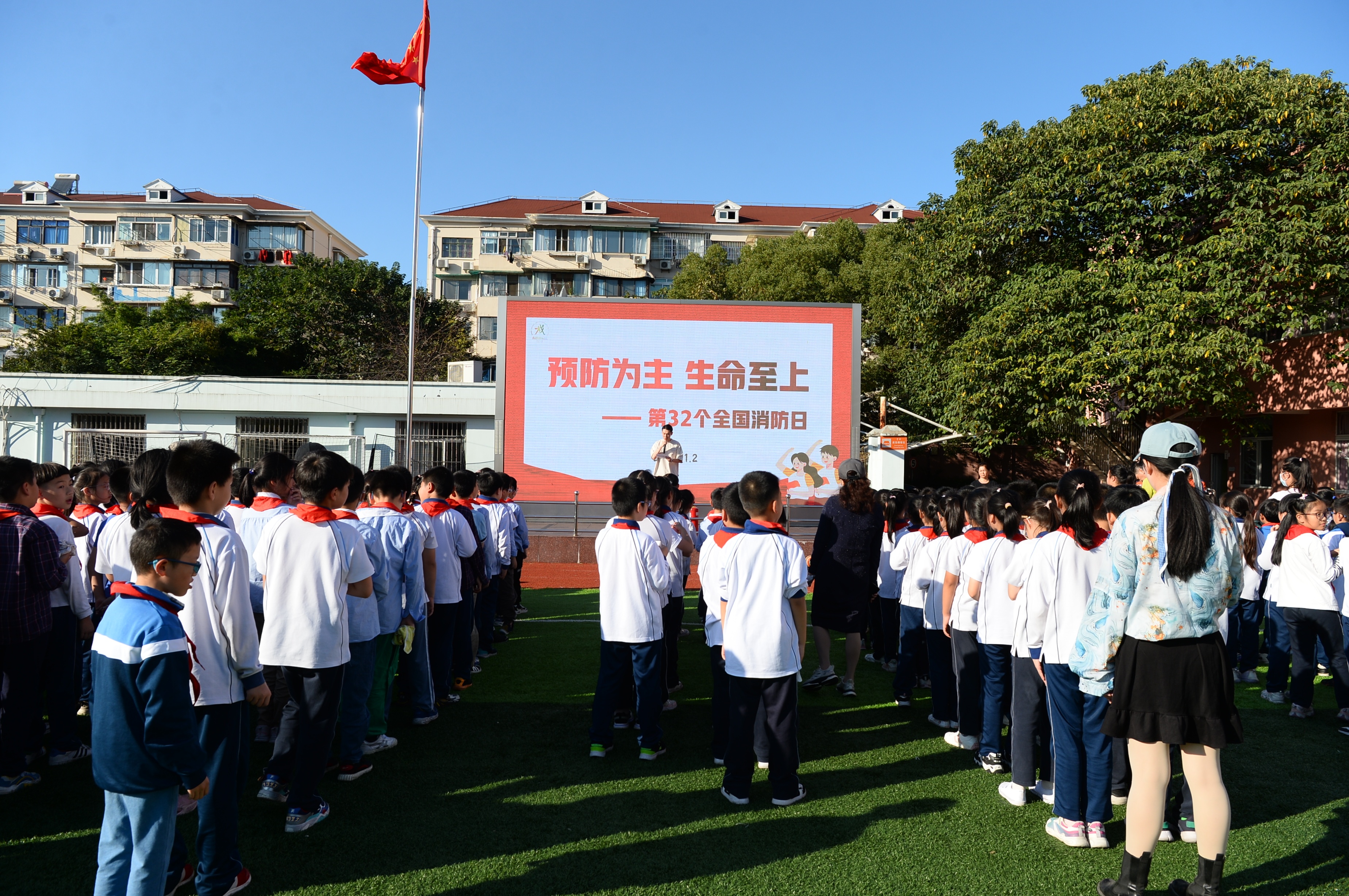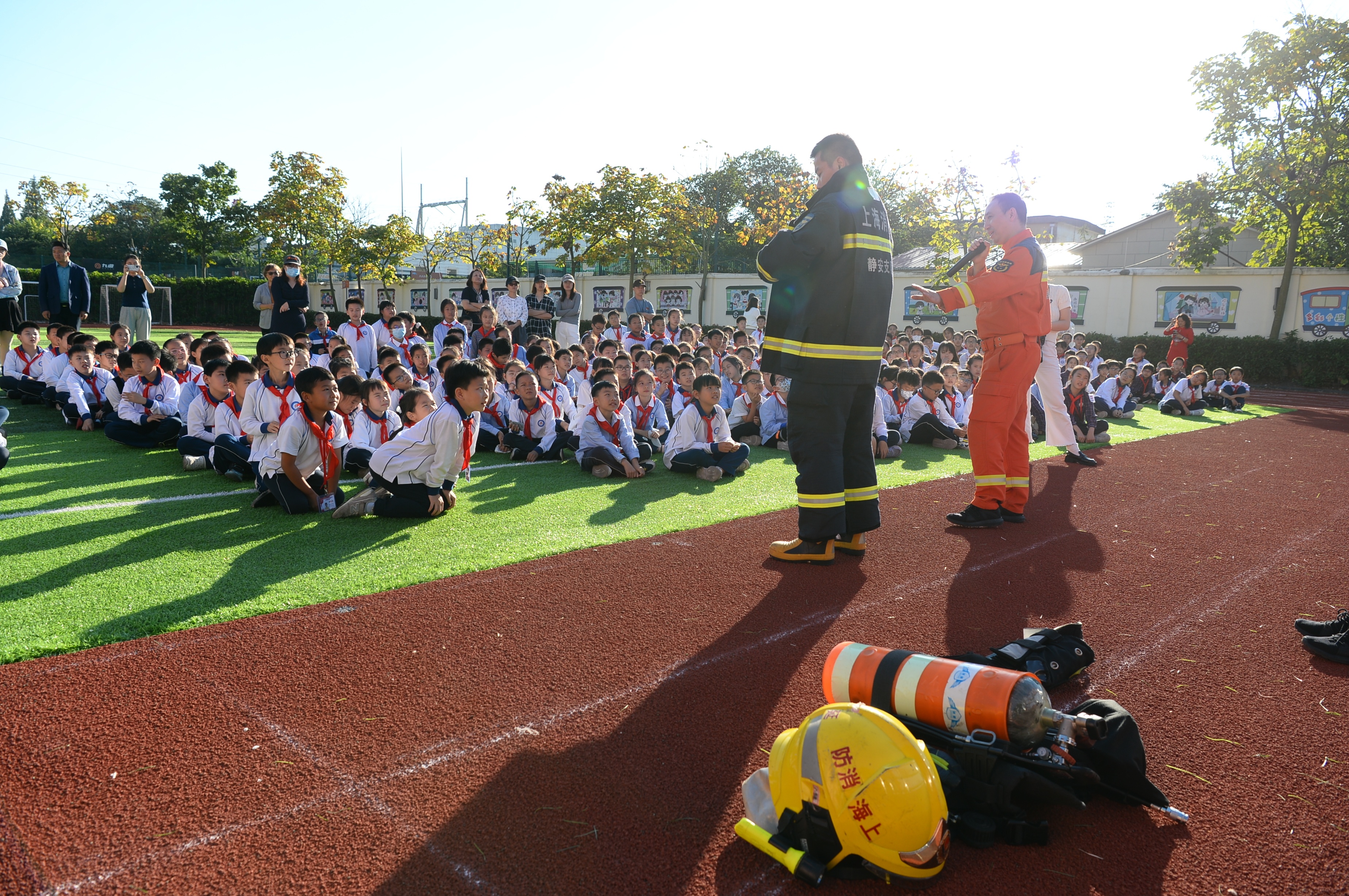 闸北成功教育实验小学坐落于万荣新苑居民区内。11月2日,为了筑牢师生的安全防护意识,提高应急自救能力,主办方在闸北成功教育实验小学进行了消防演习。