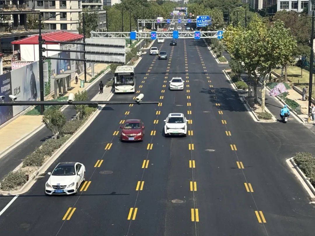 本次道路改建工程完成后,现状排水系统能力得到了极大提升,缓解了周边小区、广场的排水压力;路面机动车道宽阔平整舒适,不仅改善了行车体验,也缓解了高峰期的交通压力,为进博会周边交通通行带来便利。
