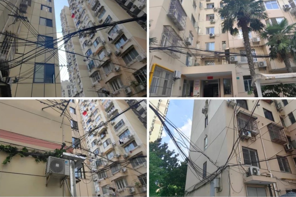 和很多老小区一样,建于上世纪90年代的西凌新村也面临着架空线“乱”的问题。居民们时常抱怨,每天走出门幢,看到东一根西一根电线“乱糟糟”盘在头顶,心情都变差了,对小区的安全也是一个隐患。