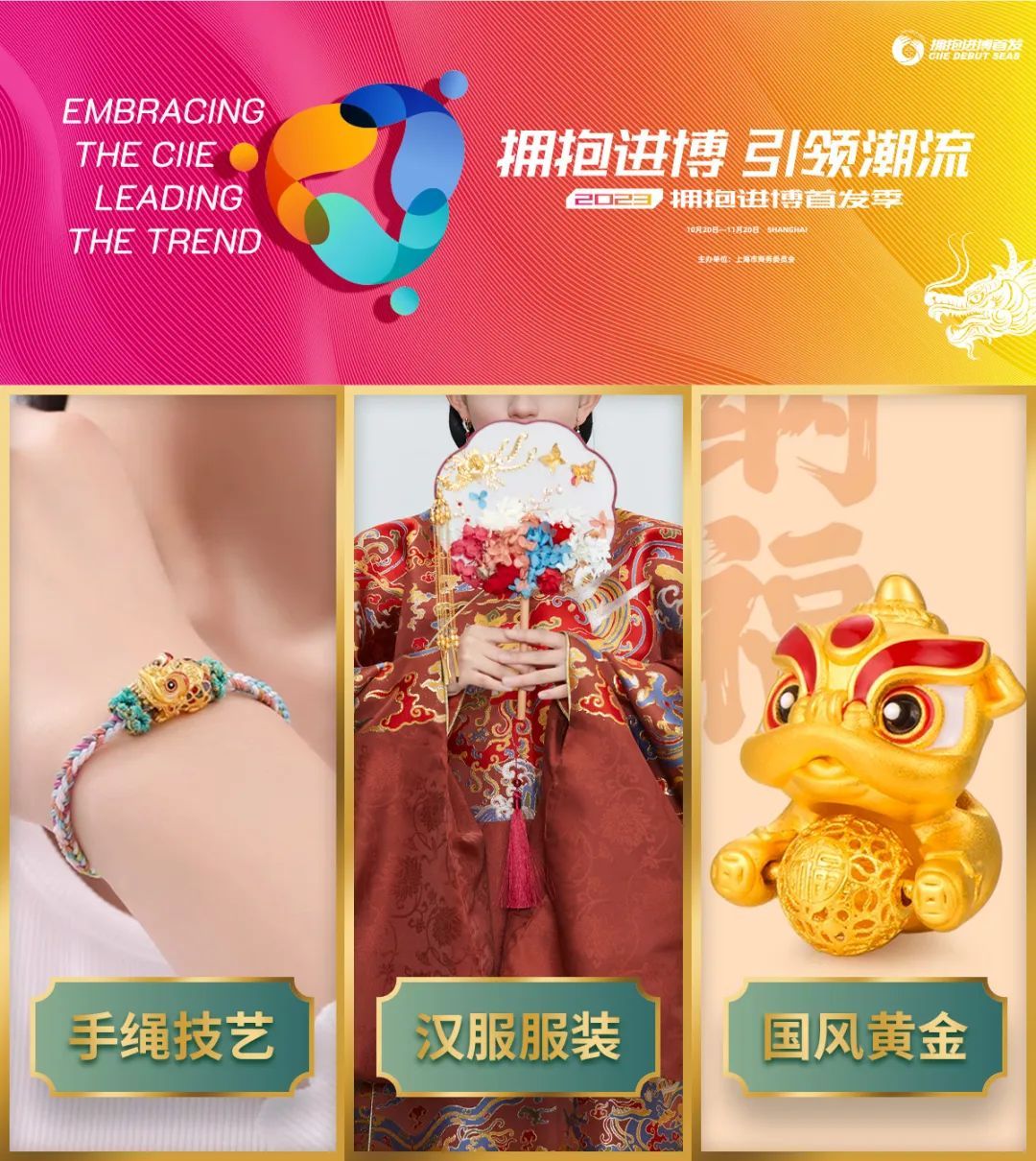 除了国际品牌的“引进来”,中国的本土品牌也在搭乘进博的东风,不断“走出去”。比如,在区内的老字号国营商场百联中环购物广场,将聚焦国风黄金、汉服服装、东方手绳编织技艺等开展系列活动;桃源π结合3周年庆,线上线下打造系列氛围美陈及主题活动,创新新型消费“体验场”;189弄购物中心将组织国学书法课堂的国学文化互动活动等等。