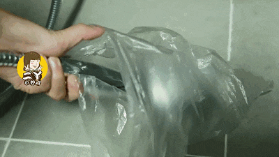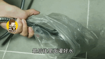 然后倒入少量白醋,打开开关放水没过喷头,把袋子系住。