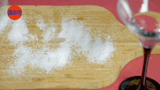 这时候只要在蛋清的位置撒上盐,用纸一擦,轻轻松松就清理干净啦!