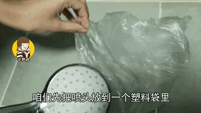 喷头用久了会产生水垢,难以清理。把喷头放进塑料袋里,再往里面倒入盐。