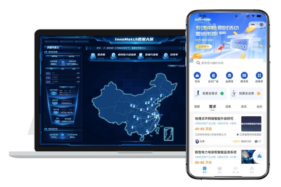 InnoMatch平台通过科创数据底座,结合智能算法,全球匹配对接解决方案,按照产业化垂直领域分类,形成“主动发布、全程跟踪”的业务模式,通过梳理1300多万科技要素关键词、1400多万家企业、471个行业等信息,输出1.3亿专利数据画像、1700万人才画像、200万家企业科技能力评估报告等,构建了以提升解决能力为主的创新模式。同时,结合技术转移人才培养基地,为技术经理人提供实训和业务参与,通过技术手段保障商业利益,提高解决方参与度。通过线上线下结合的方式,建设了遍布全国35个区域的线下推广网络,并形成了一批分布在孵化器、科技企业、服务机构和高校院所的合伙人。