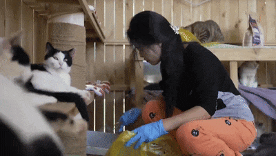 志愿者鑫姐则在一旁忙碌,清理粪便、整理猫窝、检查食具,她说:“以个人的名义给毛孩子找领养的,年年都有,但是数量还是有限的,不像这里,集体的力量大一些。”