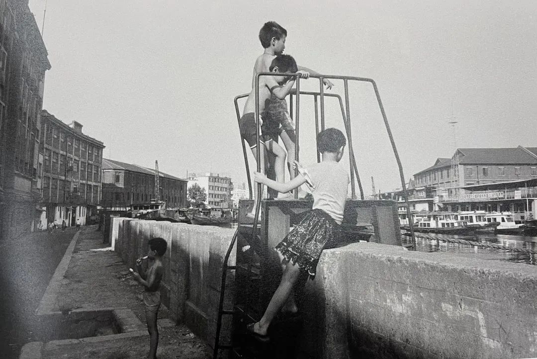 马尚龙:去年夏秋之交,我在黄浦江苏州河交汇的一个高点,俯瞰苏州河。有张旧照片穿越进来:四川路桥上几十个“野蛮小鬼”坐在桥沿,观赏四川路桥上跳水。此举固然野蛮不足取,但是不乏生动,也是彼时上海少年的欢言之为。